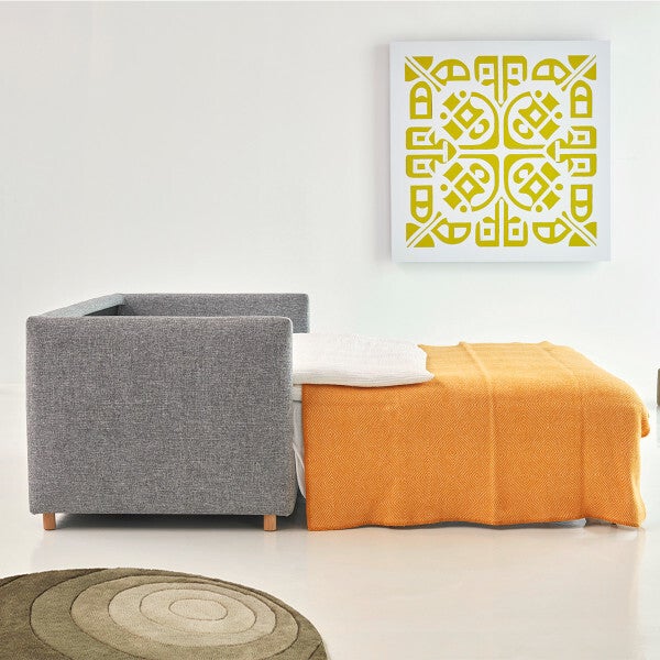 Olan maakt multifunctioneel wonen gemakkelijk. Dit compacte, gestoffeerde meubel biedt een comfortabele zitplaats voor twee. Het No-zag-veringmatras zorgt voor een gelijkmatig en ondersteunend zit- en slaapcomfort.