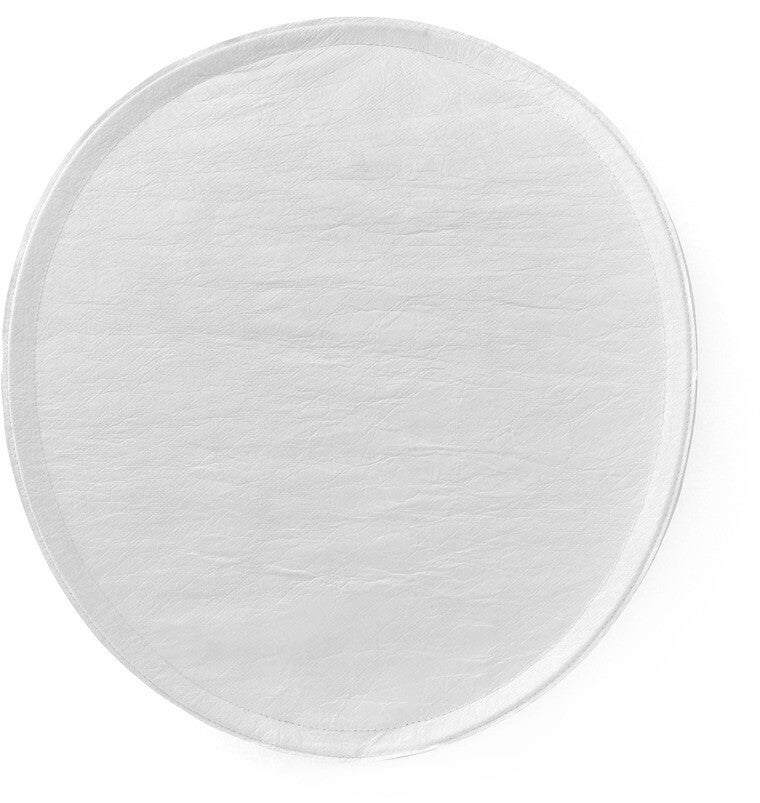 Het bijzondere van deze lamp zit hem in de kap, vervaardigd uit Tyvek - een opmerkelijk materiaal dat de krakende expressie van papier combineert met de zachtheid van textiel. Deze unieke materiaalmix geeft de lamp niet alleen een tactiele kwaliteit, maar zorgt ook voor duurzaamheid, eersteklas brandvertragende eigenschappen en volledige recycleerbaarheid.