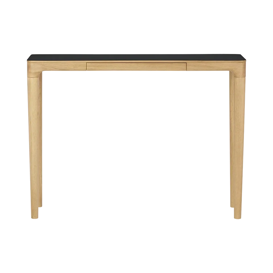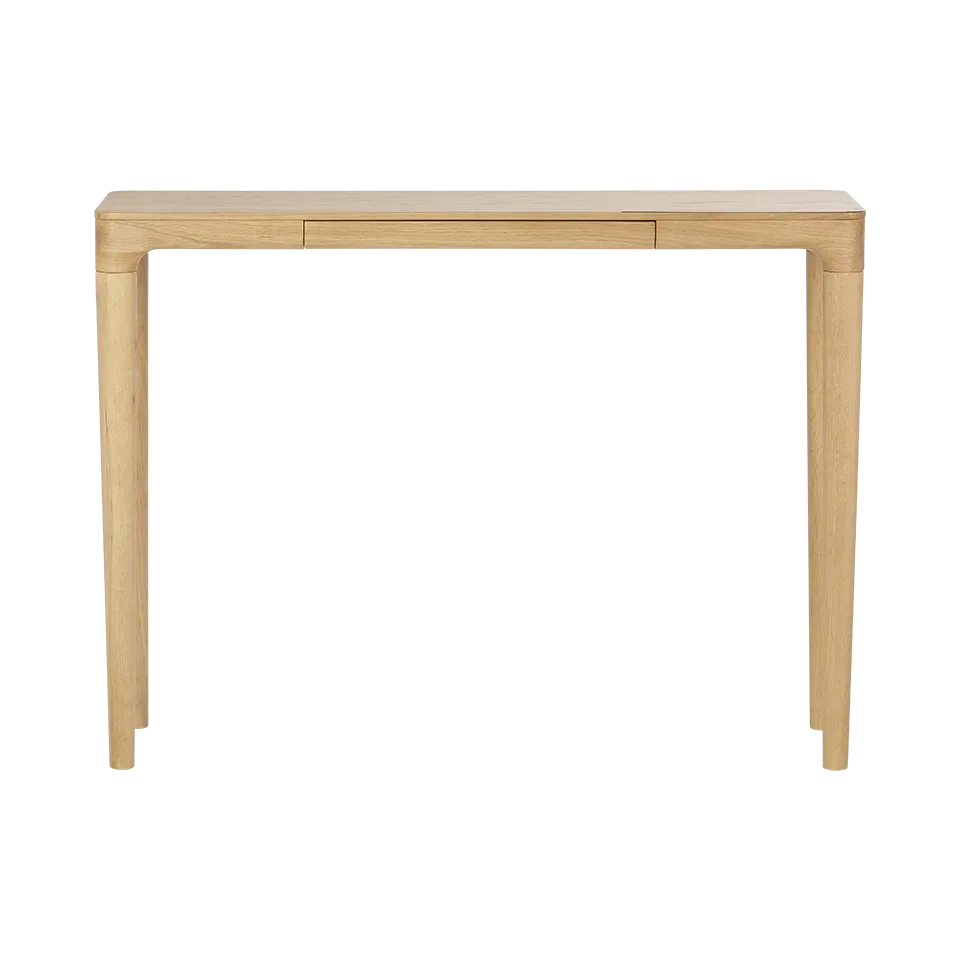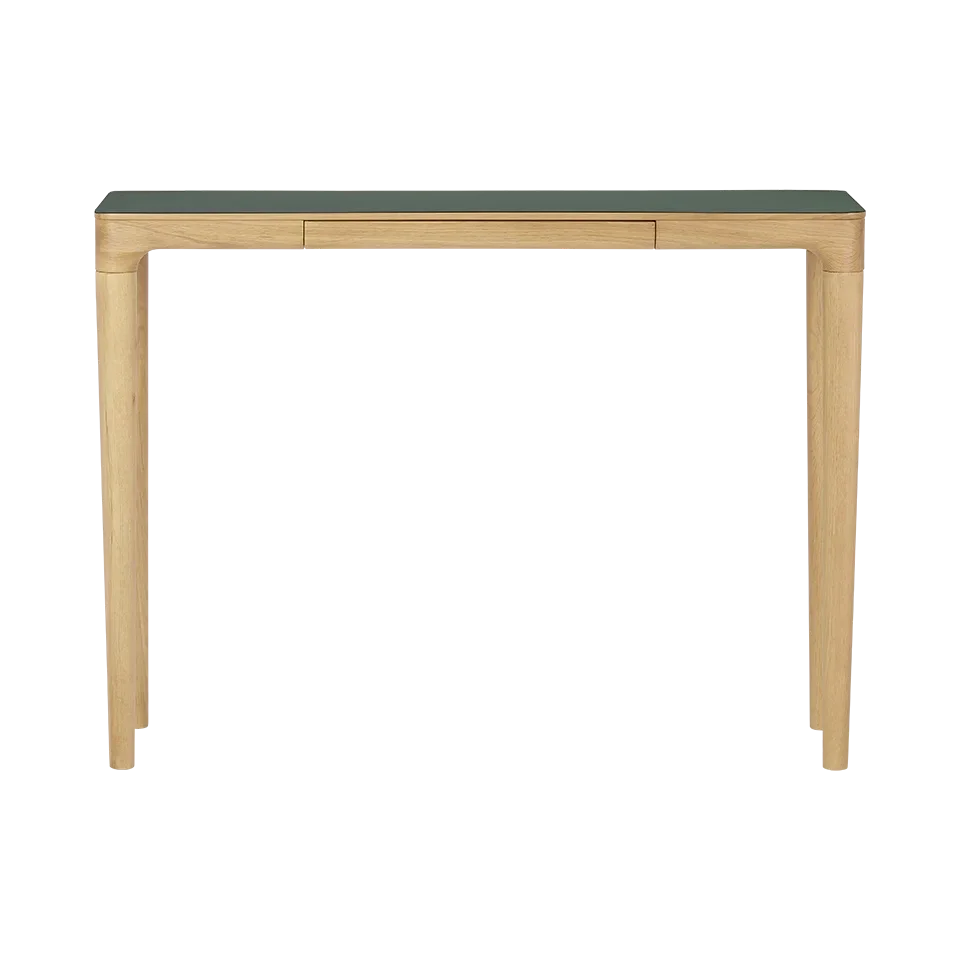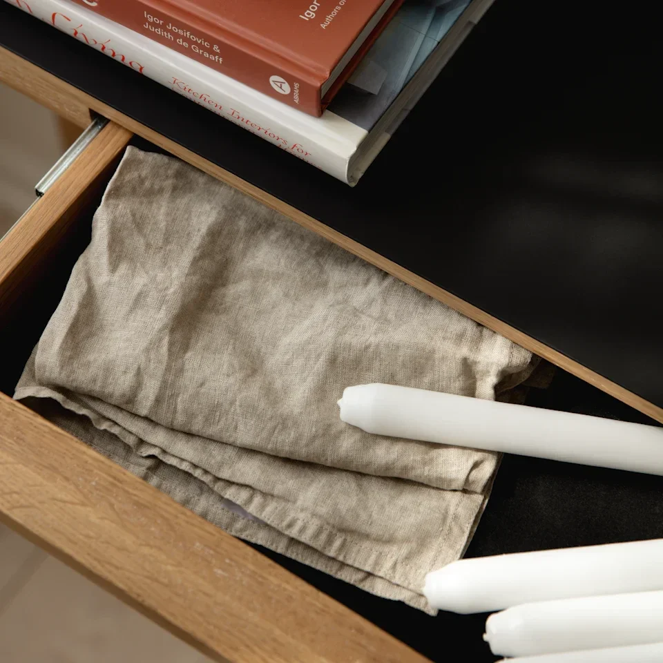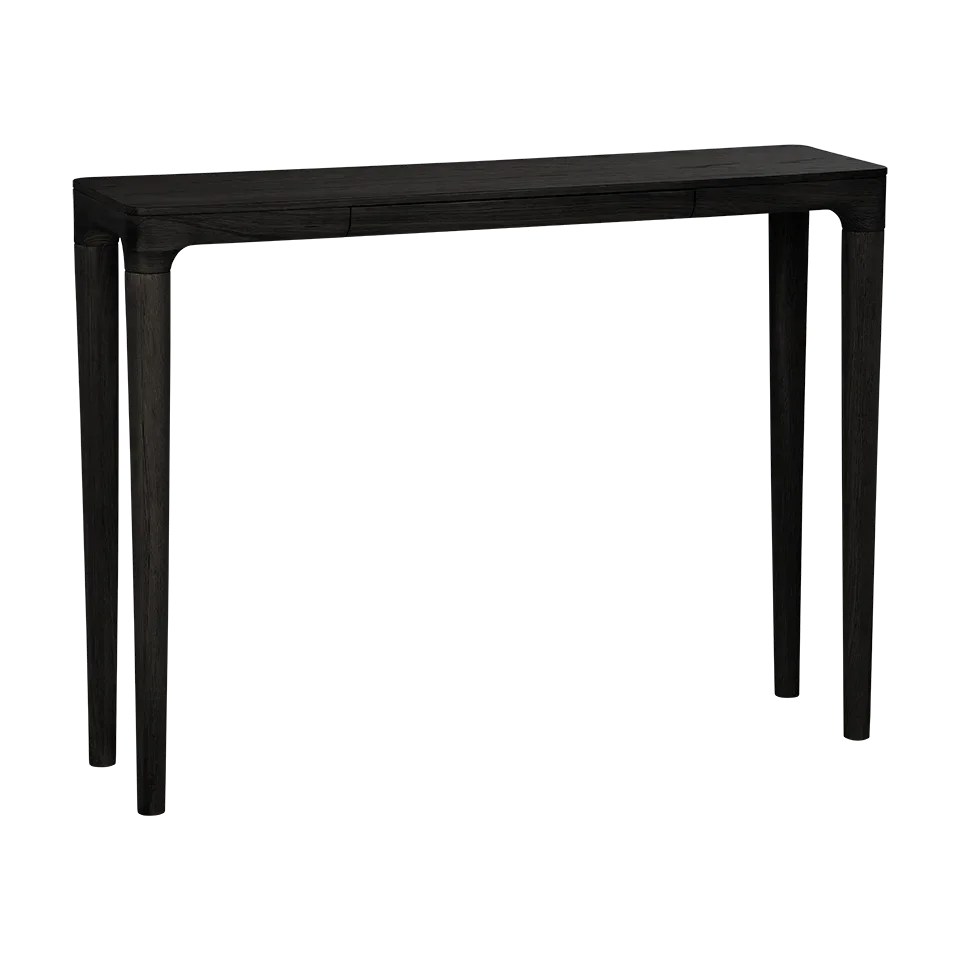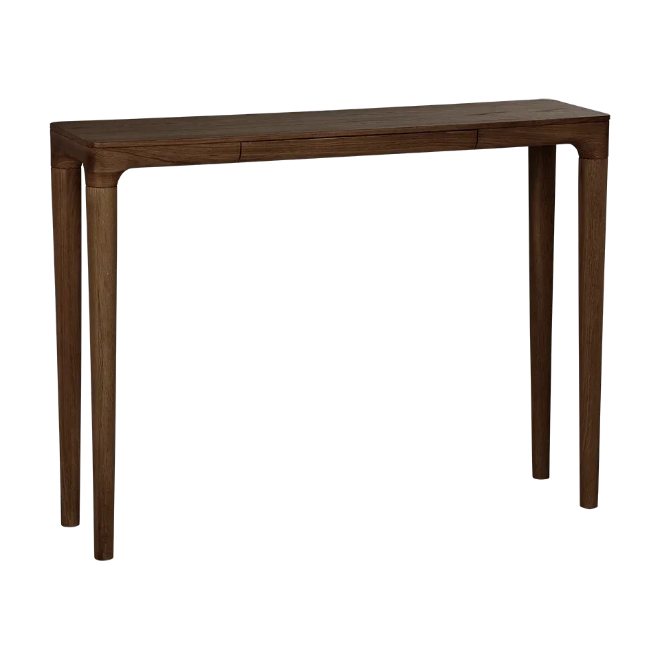De stijlvolle en discrete consoletafel heeft een met stof beklede lade waarin u spullen, bestek, servetten of belangrijke papieren kunt bewaren.