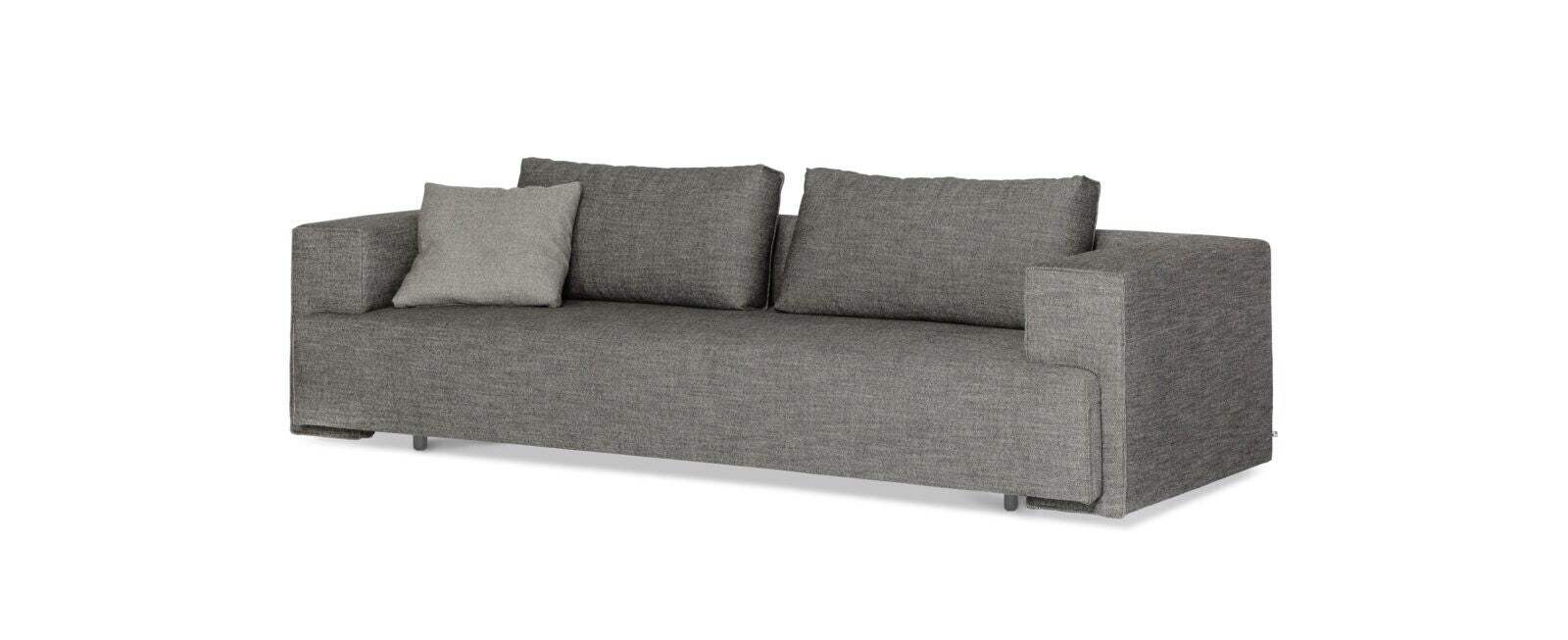 Studio Tom Dissel heeft Cella zo ontworpen dat de bank net boven de grond zweeft. Niet alleen oogt de bank daardoor luchtig, door het zwevende effect past hij bij elke soort vloer.