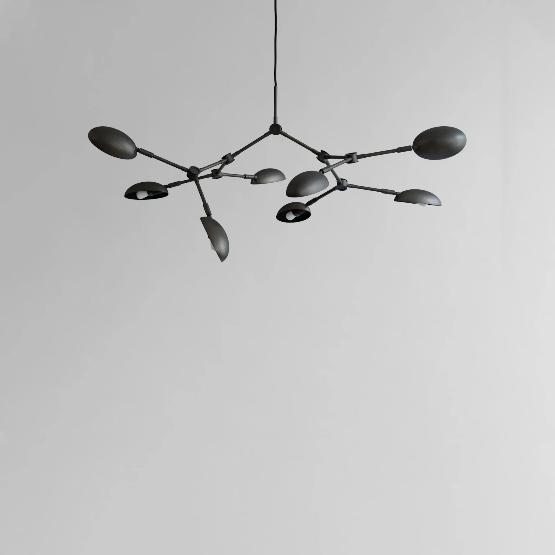 De vloeiende, organische vorm komt tot leven door 14 flexibele, verstelbare armen, die eindeloze composities, hoeken en expressies mogelijk maken. De zacht gebogen lampenkappen creëren een dynamisch lichtspel, waardoor elk moment uniek aanvoelt.