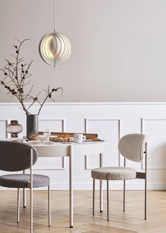 De Moon Opal hanglamp van Verner Panton is een tijdloos designstuk dat elegantie en functionaliteit combineert. De harmonieuze, ronde vorm doet denken aan de maan, terwijl het opaalwitte oppervlak een zacht, diffuus licht uitstraalt en een warme en uitnodigende sfeer creëert.