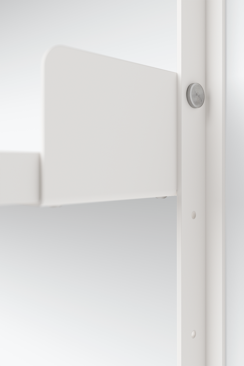De planken zijn netjes gemonteerd met platte kartelschroeven van roestvrij staal, wat een verfijnd detail aan het ontwerp toevoegt. Een systeem dat is ontworpen om te groeien - in je huis en binnen bereik - om aan verschillende opbergbehoeften te voldoen.