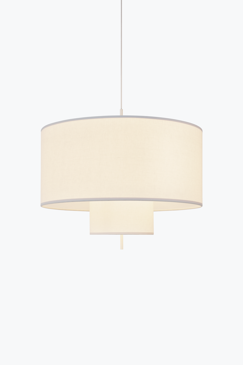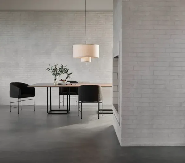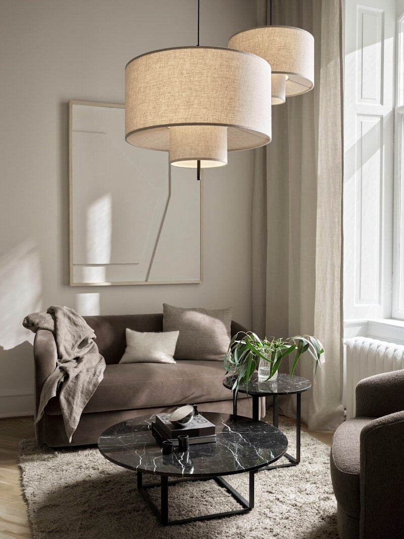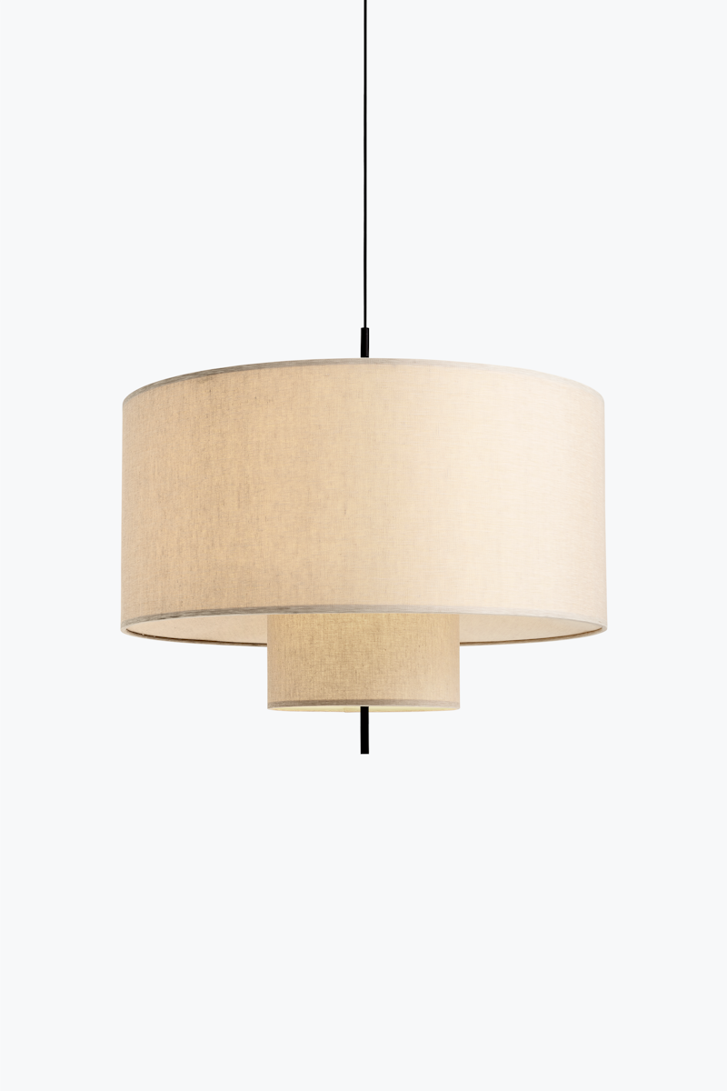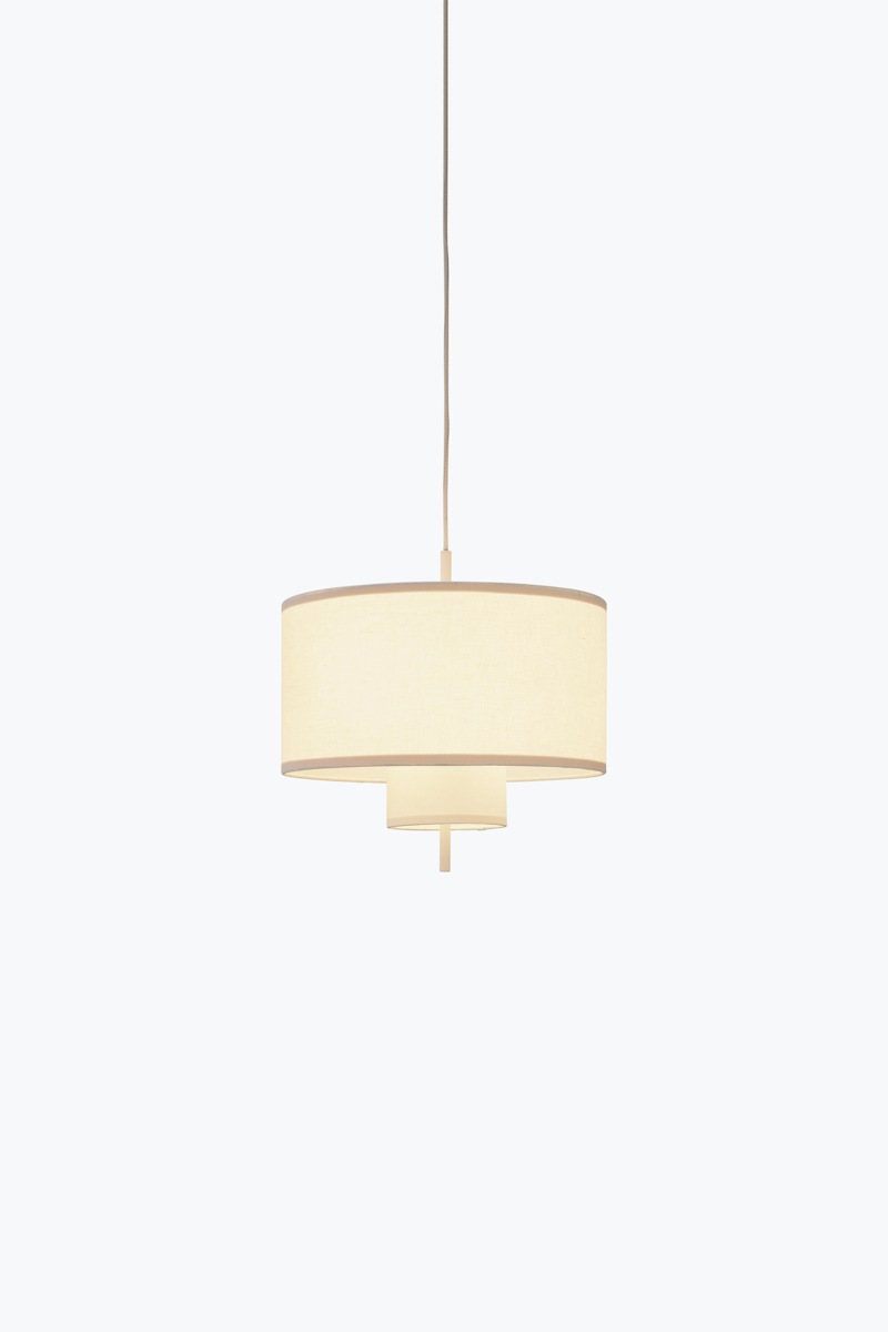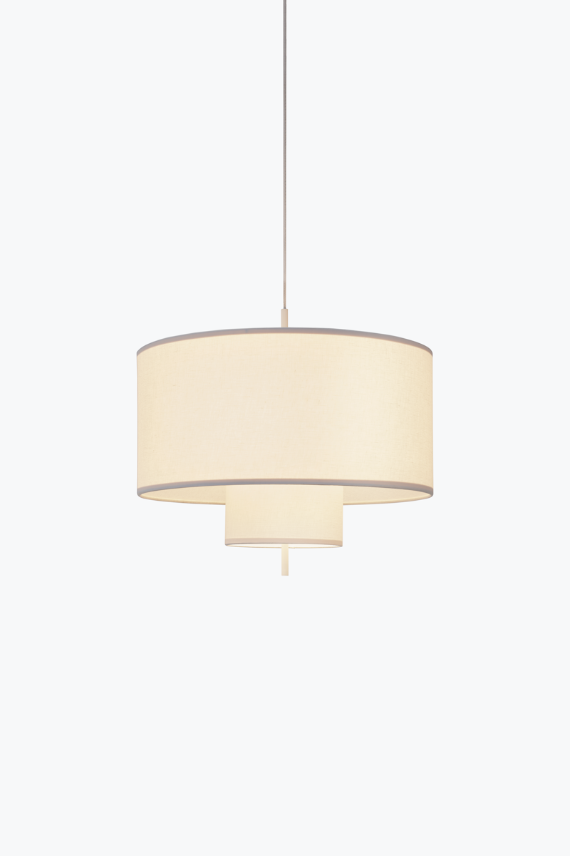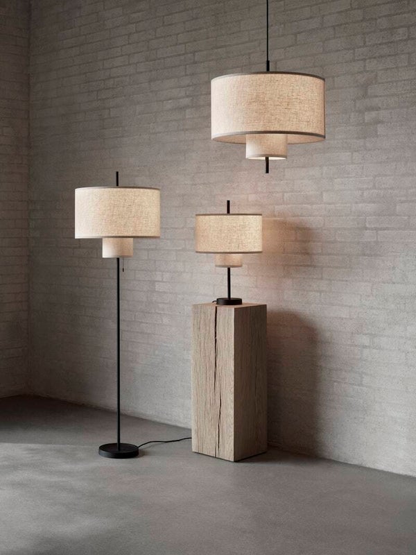 Margins overlappende lampenkappen verspreiden het licht subtiel en zetten direct de toon met warmte en tastbaarheid. De zachtheid van de stof wordt getemperd door een strak en grafisch silhouet dat in een ruimte een zekere aanwezigheid en volume geeft. Het zijn de verhoudingen, samen met details zoals het lineaire element in de lamp, die de esthetiek versterken en Margins bijzondere karakter tot uiting laten komen.