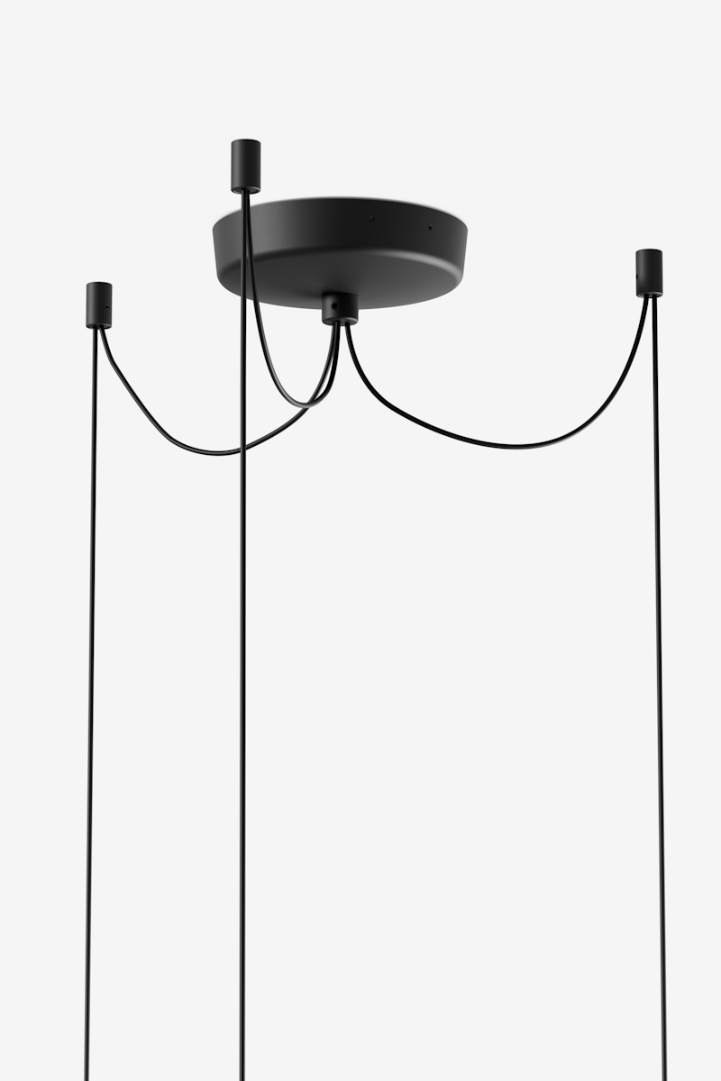 De Tense-kroonluchter, bestaande uit drie kleinere kappen met elk een diameter van ø55 cm, vormt een verfijnd alternatief voor de klassieke kroonluchter.