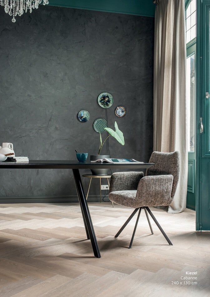 Met een organische vorm waag je de sprong in het diepe en kies je voor echt iets origineels. De kiezelvorm leent zich perfect voor een grote, opvallende tafel. Kies uit verschillende kleuren en soorten eiken en diverse onderstellen.