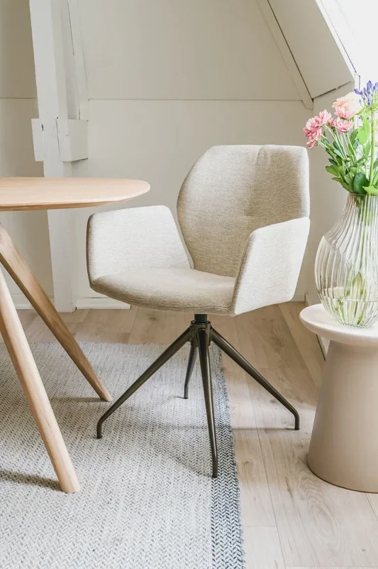 Zo kun je kiezen voor diverse kuipen, strak, los gestoffeerd of met/zonder armleuning. En kun je diverse onderstellen kiezen, van hout tot metaal , vast of draaibaar.