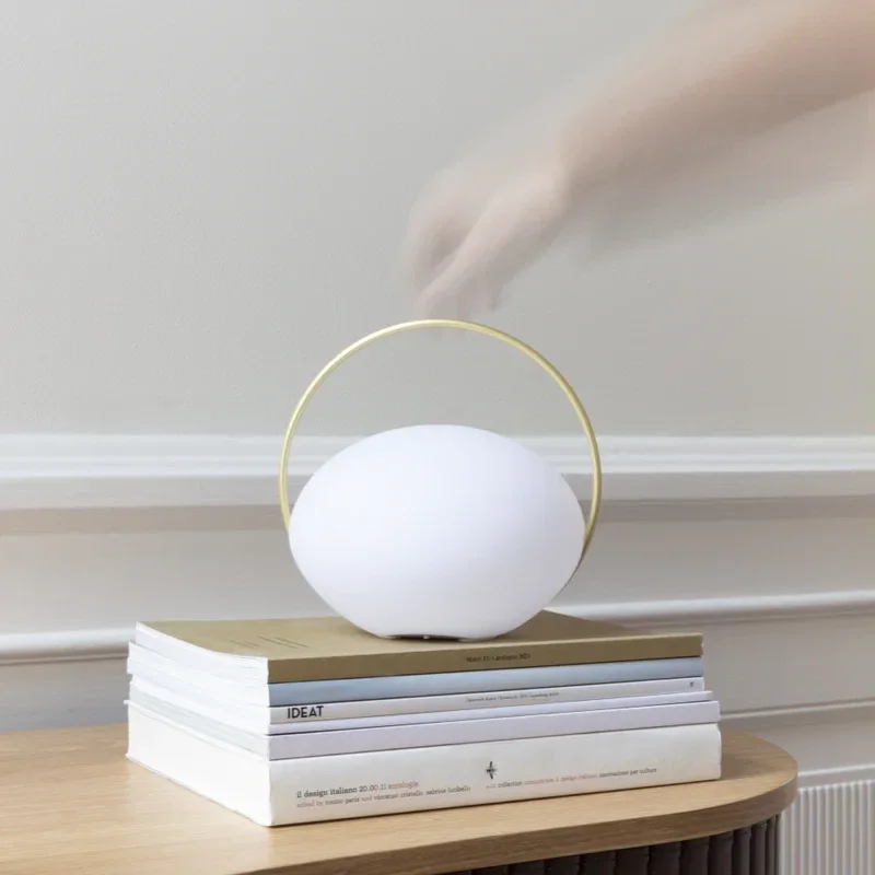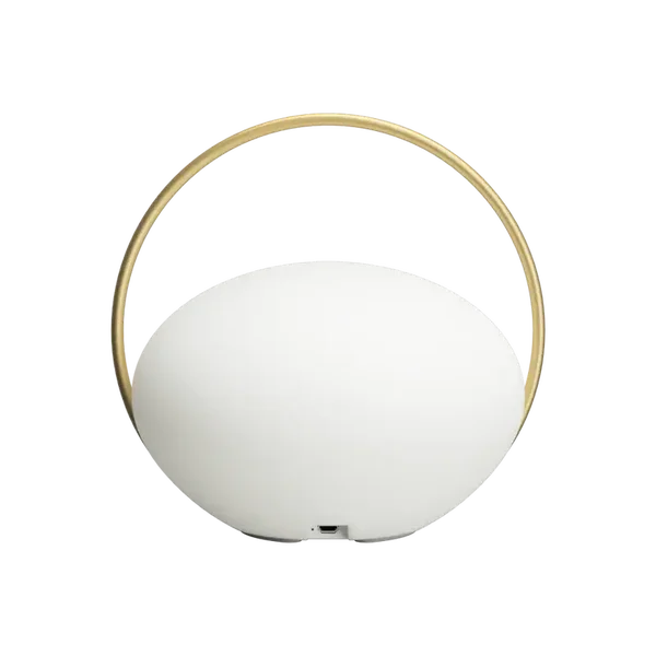 Orbit is geïnspireerd op de rotatie van de maan om de aarde en is gemaakt van melkwit kunststof met verfijnde messing details. Dit maakt de lamp zowel lichtgewicht als stijlvol – perfect om overal mee naartoe te nemen. De draagbare, draadloze lamp heeft drie verschillende lichtstanden en dankzij de constructie kun je hem aan- en uitzetten – en de lichtstanden wijzigen – door de lamp lichtjes te kantelen.