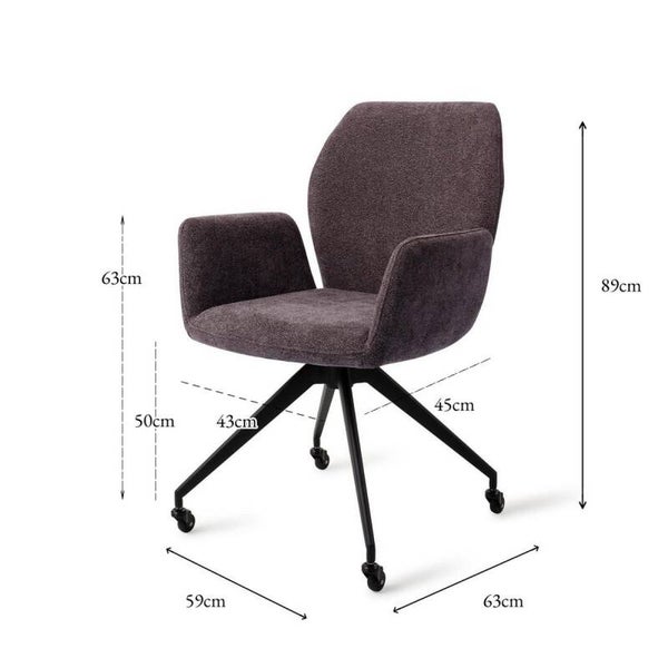 Wij zijn fan van dit ontwerp: het is strak en comfortabel. De stoel is bekleed met een duurzame polyester stof die in de verte iets wegheeft van een luxe badstof die heerlijk zacht oogt en voelt. En nu dus leverbaar met wielen!