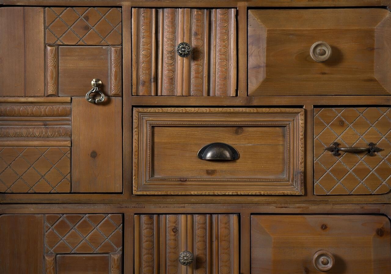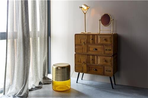 Met de Dutchbone Jove haal je een waar kunstwerk in huis. De verschillende patronen en handgrepen van de deuren en lades zorgen ervoor dat je je ogen niet van de kast kunt afhouden. Iedere keer ontdek je weer iets nieuws! Samen met de conische, ijzeren poten krijgt de kast een fijne vintage uitstraling, die zo uit de jaren 60 of 70 zou kunnen komen. Met dit dennenhouten meubelstuk haal je dus echt iets unieks in huis.